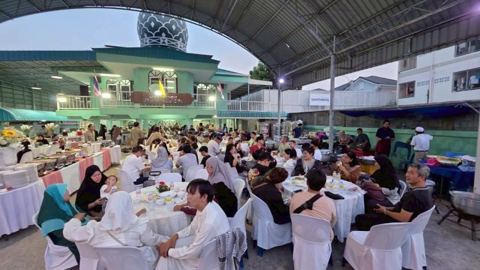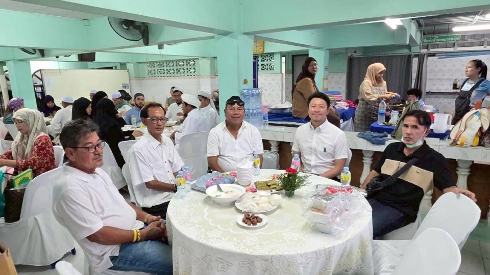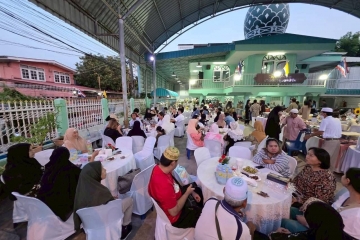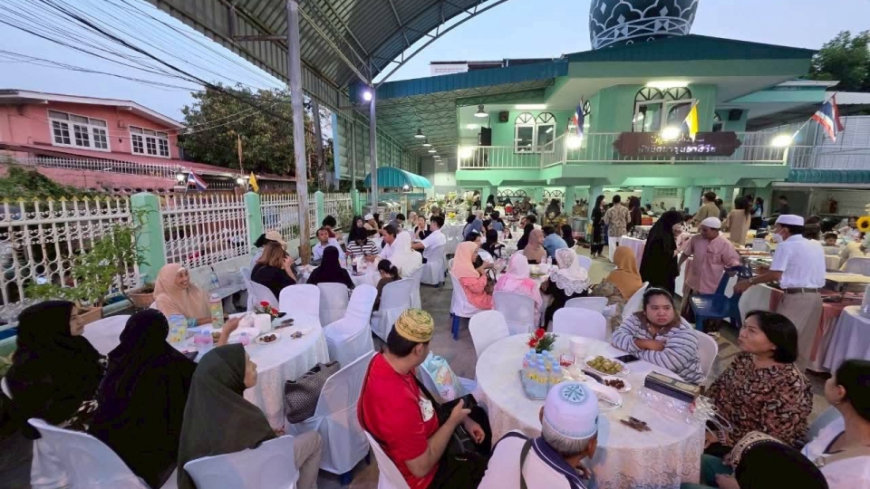 คุณมานพ รื่นสุภาพ น้องชายอิหม่ามมาโนช เป็นเจ้าภาพเลี้ยงอาหารละศีลอด ที่มัสยิด(บุฟเฟ่ต์) โดยเชิญอิหม่ามและกรรมการแต่ละมัสยิดในสมุทรปราการ 10มัสยิด กทม. 3มัสยิด