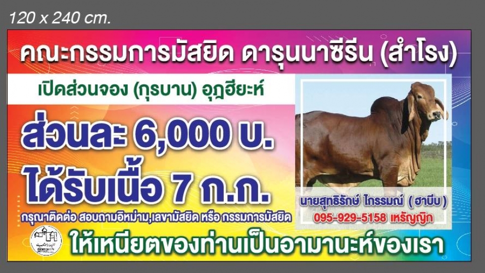 วันอีดอัฏฮาปียี้ ผู้ใดสนใจจองส่วนเนื้อกุรบ่าน ที่มัสยิด