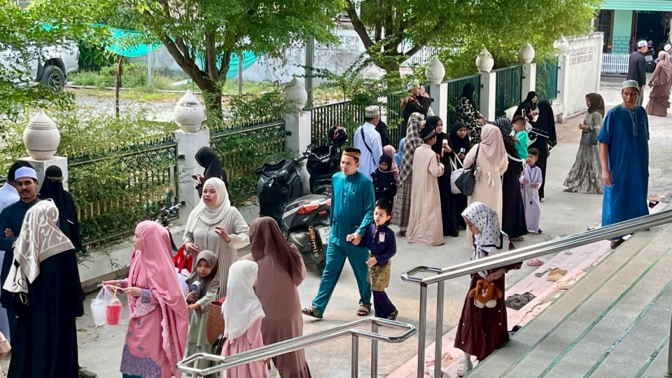 ละหมาดอีดในชุมชนมัสยิดมะซอตุ๊ดดีนี๊ยะ พบปะพี่น้องเพื่อนพ้อง มาอัพให้กันและกัน ทานอาหารเช้าร่วมกันฉันท์พี่น้อง ร่วมรำลึกถึงบรรพชนที่ได้จากเราไปและสร้างกำปงนี้ไว้ลูกหลานได้ดูแลและพัฒนาสืบต่อไป